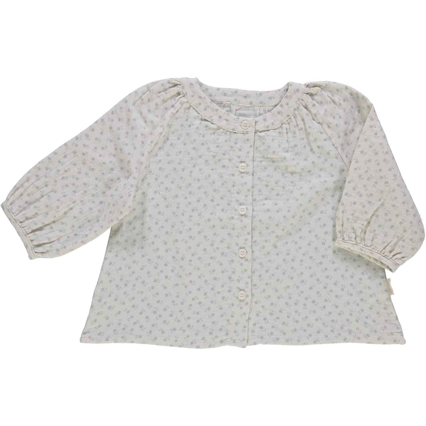 Belle blouse Pecan Fleuri Lavande enfant avec un col rond et des manches ballons. Parfait pour cette saison avec une petite laine de la collection.