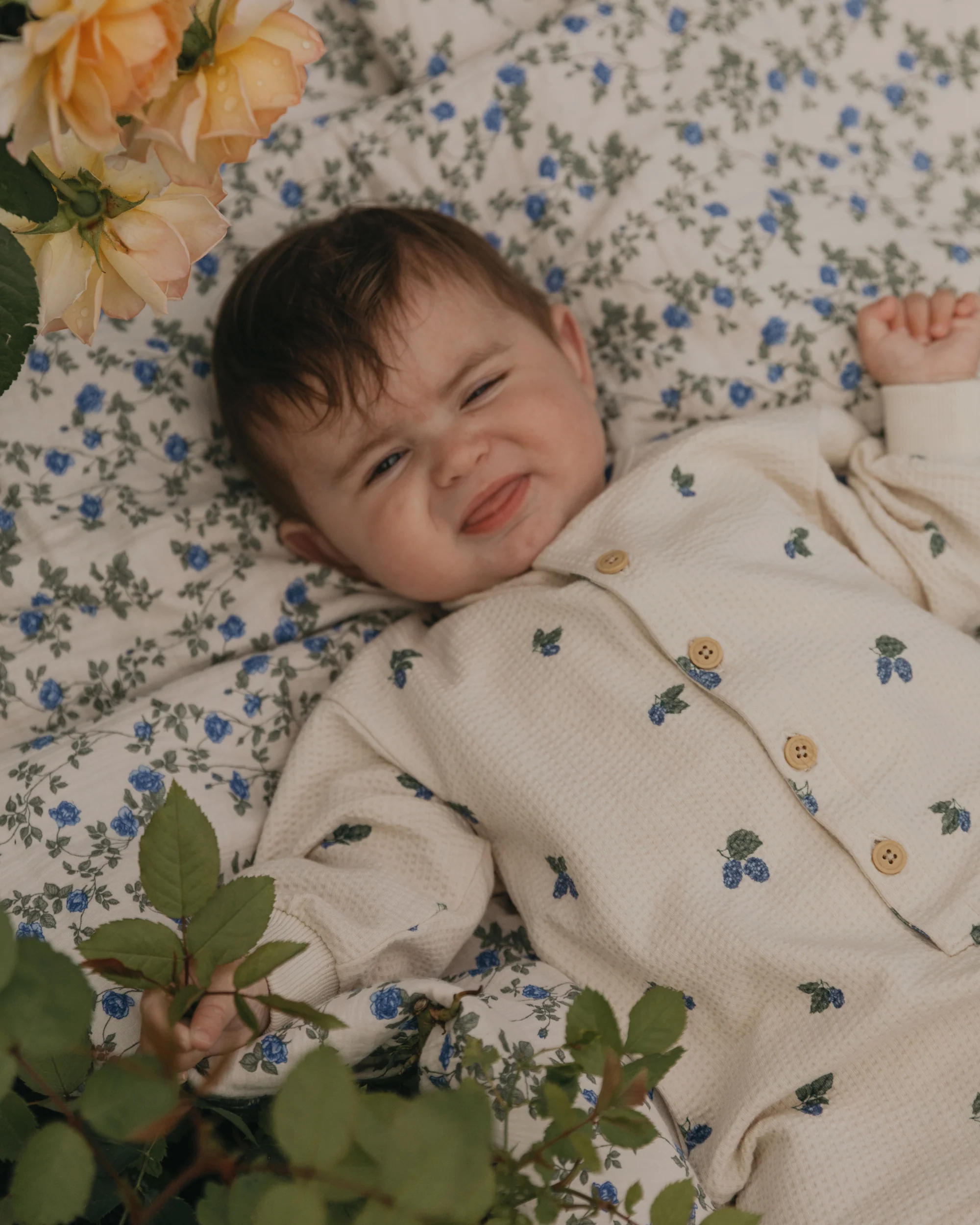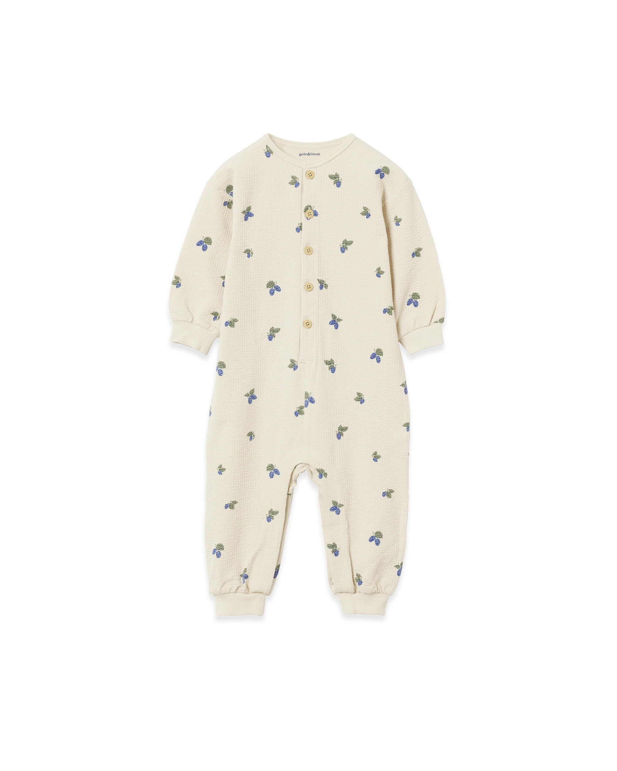 Combinaison en jersey doux et structuré en coton biologique, offrant un confort optimal. Fermeture boutonnée devant et boutons-pression à l’entrejambe pour un habillage facile.