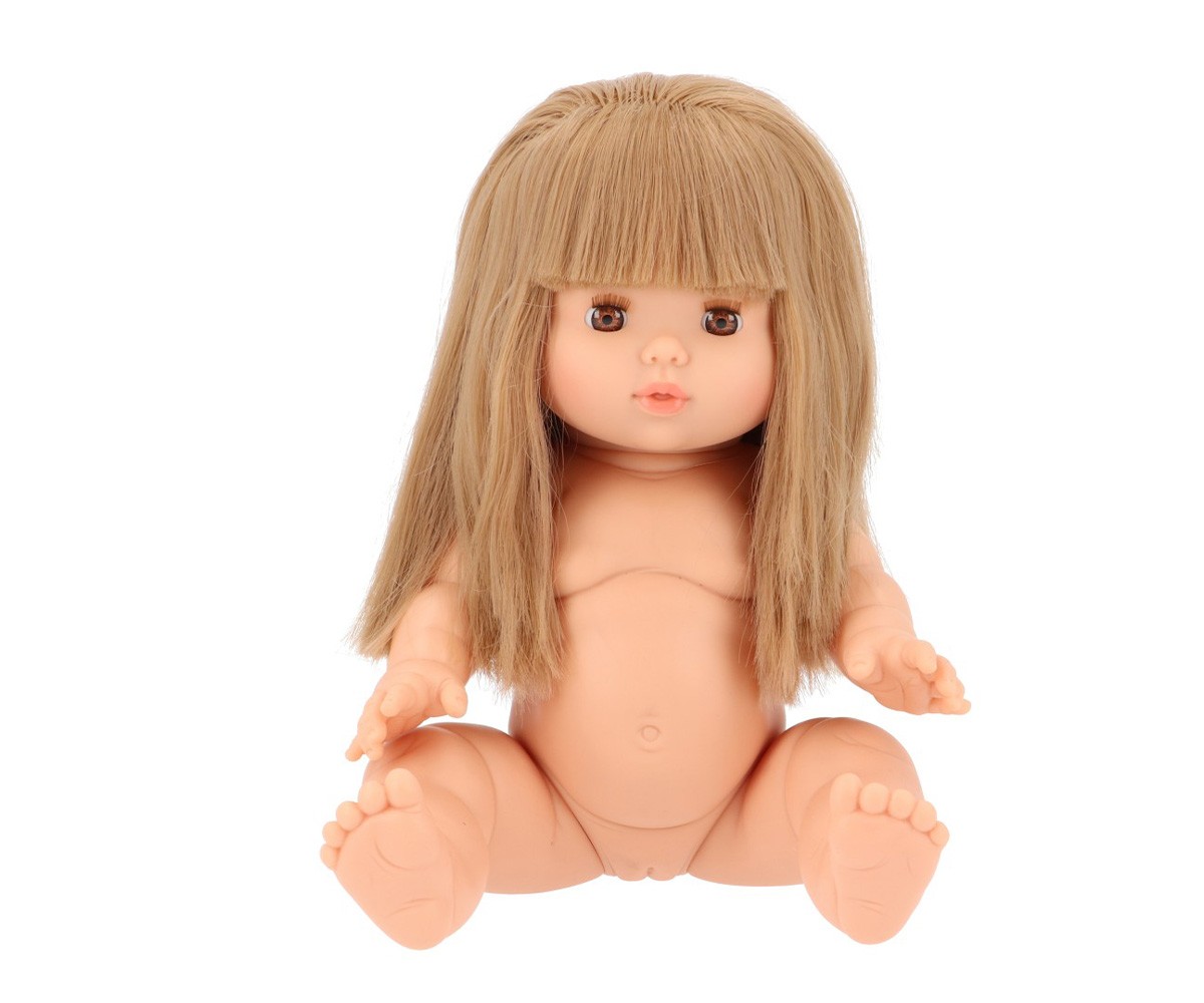 La Poupée Nina, petite fille aux yeux marrons est un poupon Gordis avec des cheveux long et blond de 34 cm.