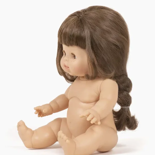 La Poupée Valentine, petite fille aux yeux marrons clairs et avec tâches de rousseur est un poupon Gordis avec sa natte tressée de 34 cm.