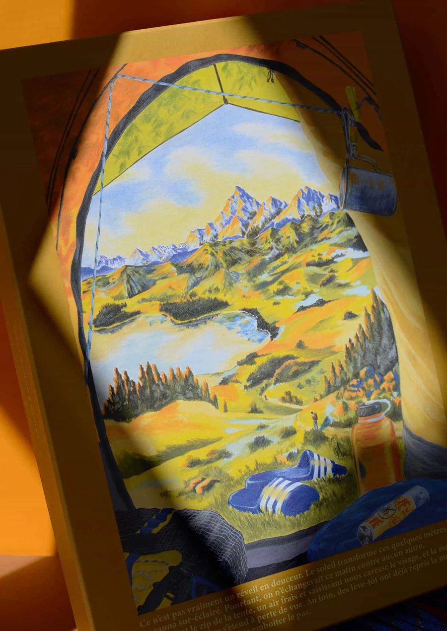 Vous n’attendiez que ça, prendre votre sac à dos et partir ! Alors on vous emmène dans ce souvenir d’un réveil pas très confortable mais tellement magique. Entre les claquettes, l’anti-moustique indispensable et ce paysage infini qui s’étend sous vos yeux, on vous promet une belle évasion colorée.
